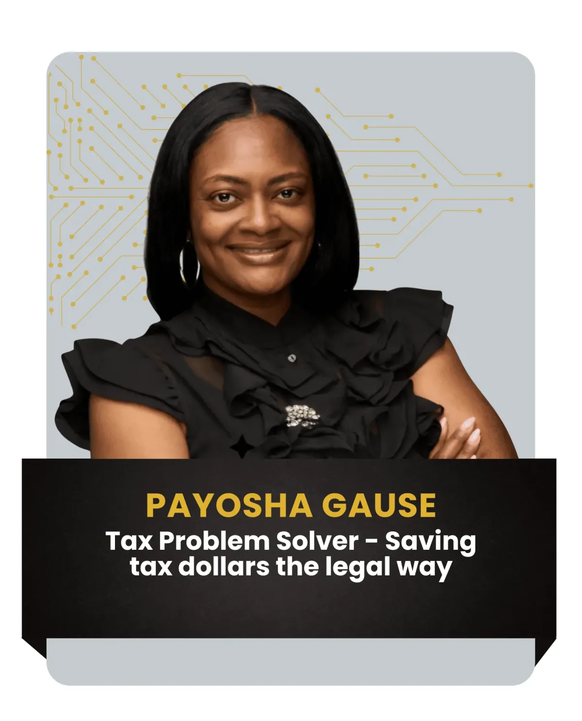 Payosha Gause is the founder of Tax Remedy Hub, a New York City–based tax preparation, planning, and representation firm. With more than 27 years of experience in the tax industry, including prior ownership of a Jackson Hewitt franchise, she has a proven track record of resolving complex tax matters and helping clients retain more of their income. As an Enrolled Agent and Certified Real Estate Tax Strategist, Payosha designs tailored tax strategies for individuals and businesses, with a strong focus on real estate investors. She is committed to helping investors optimize rental portfolios while maintaining compliance and maximizing credits, deductions, and legal tax advantages.